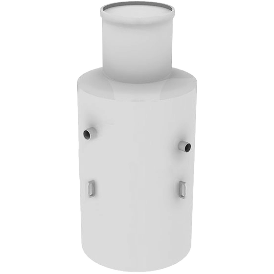 В готовом виде септик имеет полипропиленовые патрубки, для подводящей/отводящей канализации, под трубу Ø110 мм.