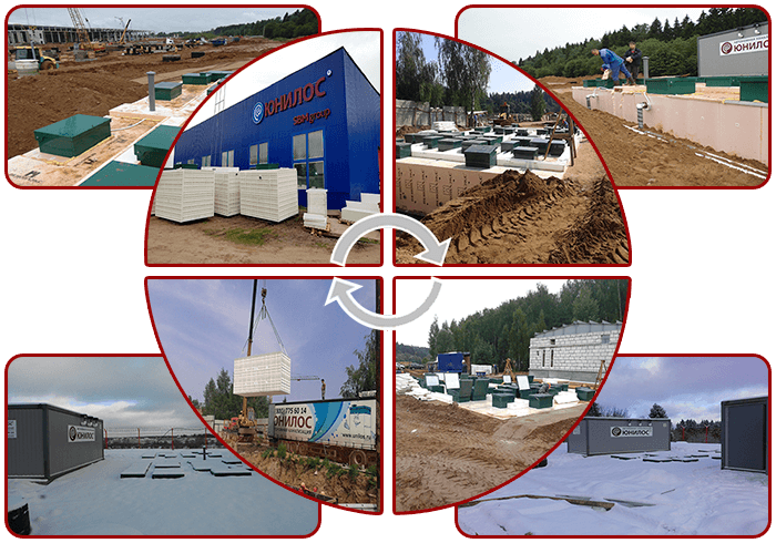 Расположение блока биологической очистки (емкостное оборудование, в объемах которого протекают процессы биологической переработки стоков) возможно в наземном, полузаглубленном и в подземном исполнении. Оборудование доочистки стоков размещается в быстровозводимом здании типа «бытовка» с возможностью автоматического поддержания температуры на уровне + 10оС. Кроме оборудования доочистки в помещении размещаются воздуходувки, электротехническое и прочее необходимое оборудование.